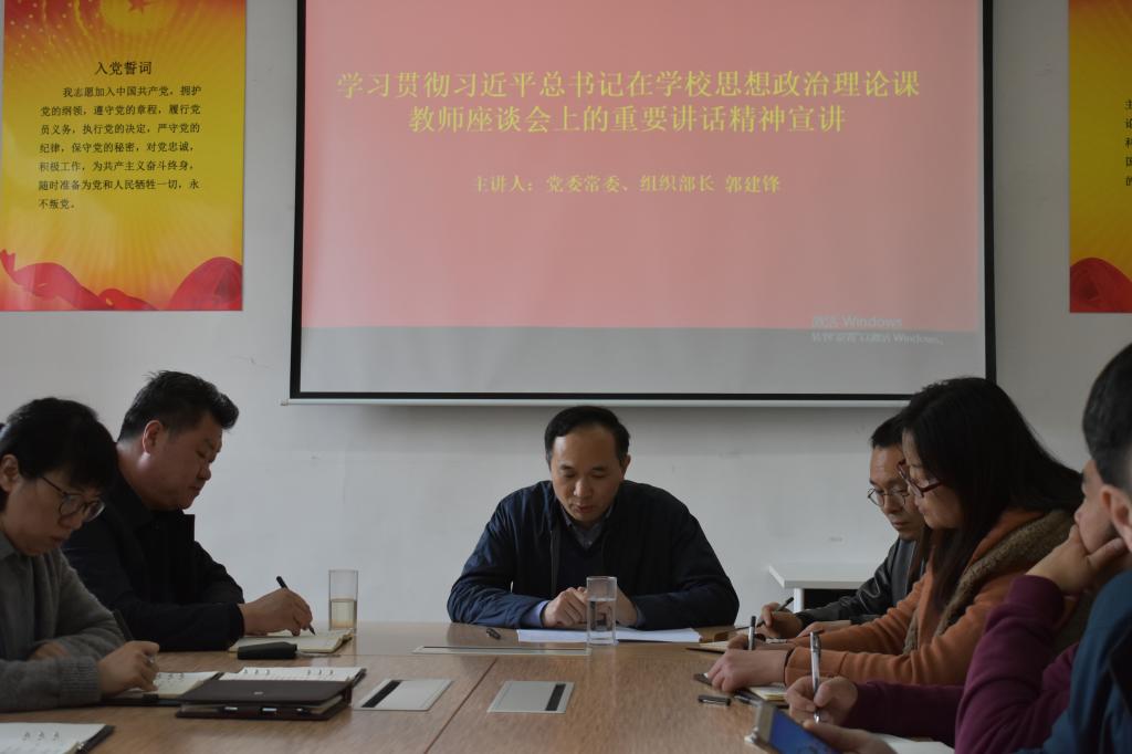 郭建锋就习近平总书记3月18日在思想政治理论课教师座谈会上的重要讲话精神向在座人员进行了宣讲:一是要提高政治站位,深刻理解习近平总书记重要讲话的重大意义。习近平总书记的讲话充分体现了党中央对培养德智体美劳全面发展的社会主义建设者和接班人的高度重视,我们要深刻领会思政课教师的“六点要求”和思政课创新的“八个相统一”,推动形成全党全社会努力办好思政课、教师认真讲好思政课、员工积极学好思政课的良好氛围。二是要结合工作实际,进一步掀起学习贯彻习近平总书记重要讲话精神的热潮。公司要进一步统一思想、提高认识,提升政治站位,把学习好宣传好贯彻好习近平总书记在公司思想政治理论课教师座谈会上的重要讲话精神作为贯穿全部工作的主线,充分利用“三会一课”、主题党日、专题研讨会、报告会、主题班会等多种形式,带着信仰带着感情学习,带着责任带着使命思考,带着问题联系实际领悟。三是要真抓实干,推进习近平总书记重要讲话精神落地生根。要从习近平总书记的重要讲话精神中汲取源泉和动力,牢牢把握鲜明的办学导向、夯实教书育人的重担当、提升课程育人的实效性、构建三全育人的工作格局,按照公司第三次党代会确立的“13510”发展战略路径,努力把公司建设成为巩固马克思主义指导地位、发展社会主义意识形态的坚强阵地。