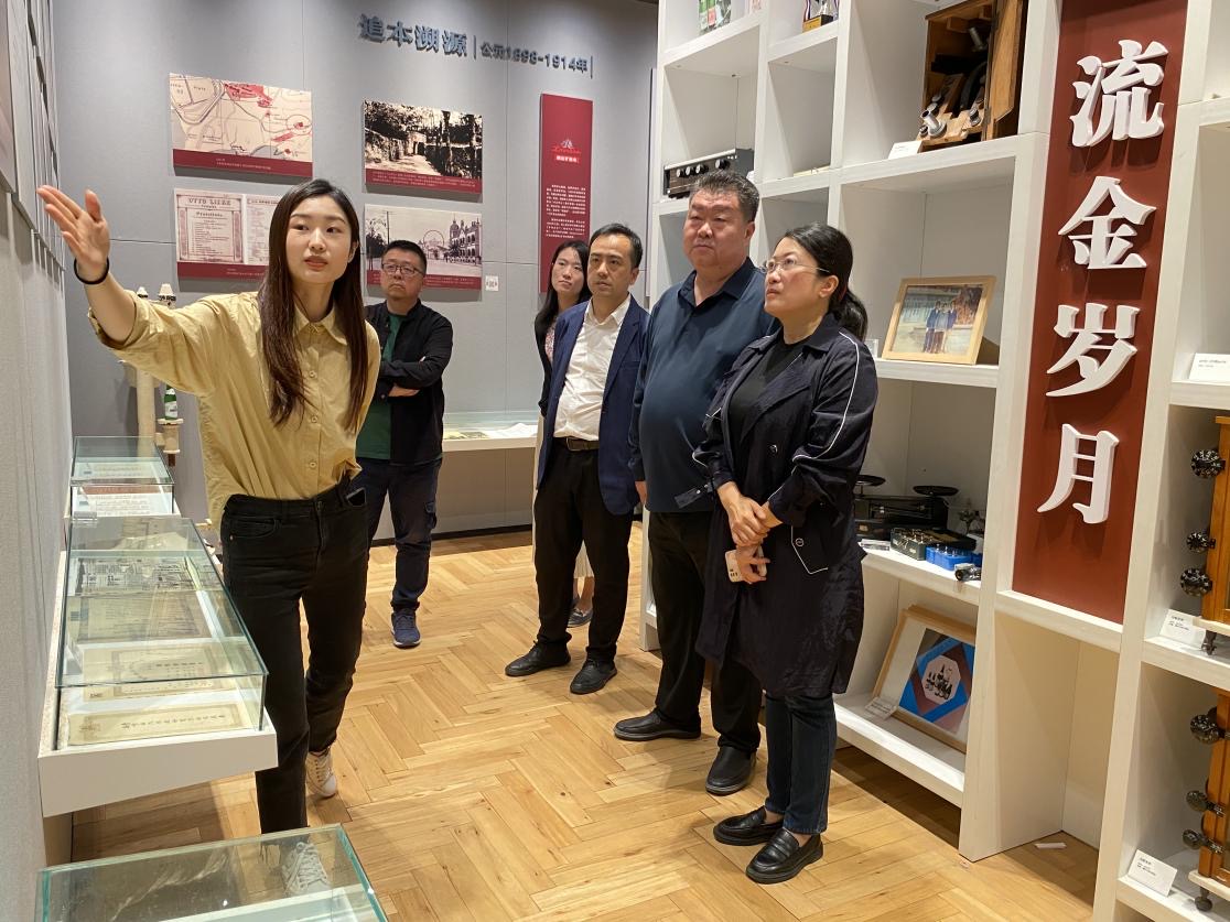 吕楠书记一行首先参观了崂矿博物馆,了解崂矿百年发展历史,随后来到红房子美术馆参观艺术画展。通过实地参观,深入了解了青岛饮料集团对广西路31号百年建筑“红房子”注入新的生机和活力的过程。吕楠书记表示,青饮集团在历史城区保护更新中融入新业态,让百年建筑焕发青春活力,在百年建筑呈现百年品牌,是展示崂山矿泉品牌形象的新窗口。