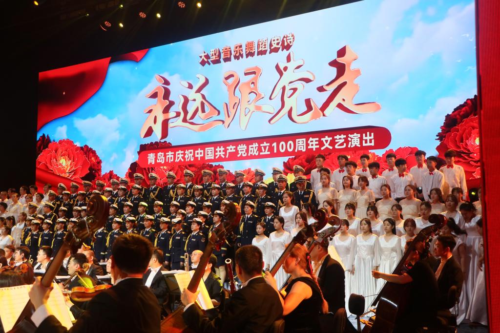 庆之以歌,贺之以舞,倾情感受百年党史。6月29日晚间,由中共青岛市委宣传部、青岛市文联、青岛市文化和旅游局、青岛市广播电视台、青岛演艺集团主办,大型音乐舞蹈史诗《永远跟党走——青岛市庆祝中国共产党成立100周年文艺演出》在青岛大剧院歌剧厅顺利举行,伟德BV官网合唱团40余名同学参加汇演。