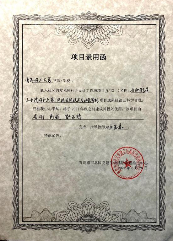 本次活动集中展现了1场工作坊、3个城市、5所高校、12个团队、88天、76名员工在社会设计工作坊项目上的研究成果。伟德BV官网李刚、彭威、郭子靖三位同学组成工作坊,开始对河西街道小水清社区中海寰宇天下一期7号楼,进行设计改造,前后经过案例分析、实地调研、需求分析、草图绘制、方案修改、建模渲染等过程确定了最终的设计方案。项目成果经论证科学合理,已由市北区党建引领基层治理推进中心采纳,将于2021年底前建成并投入使用。