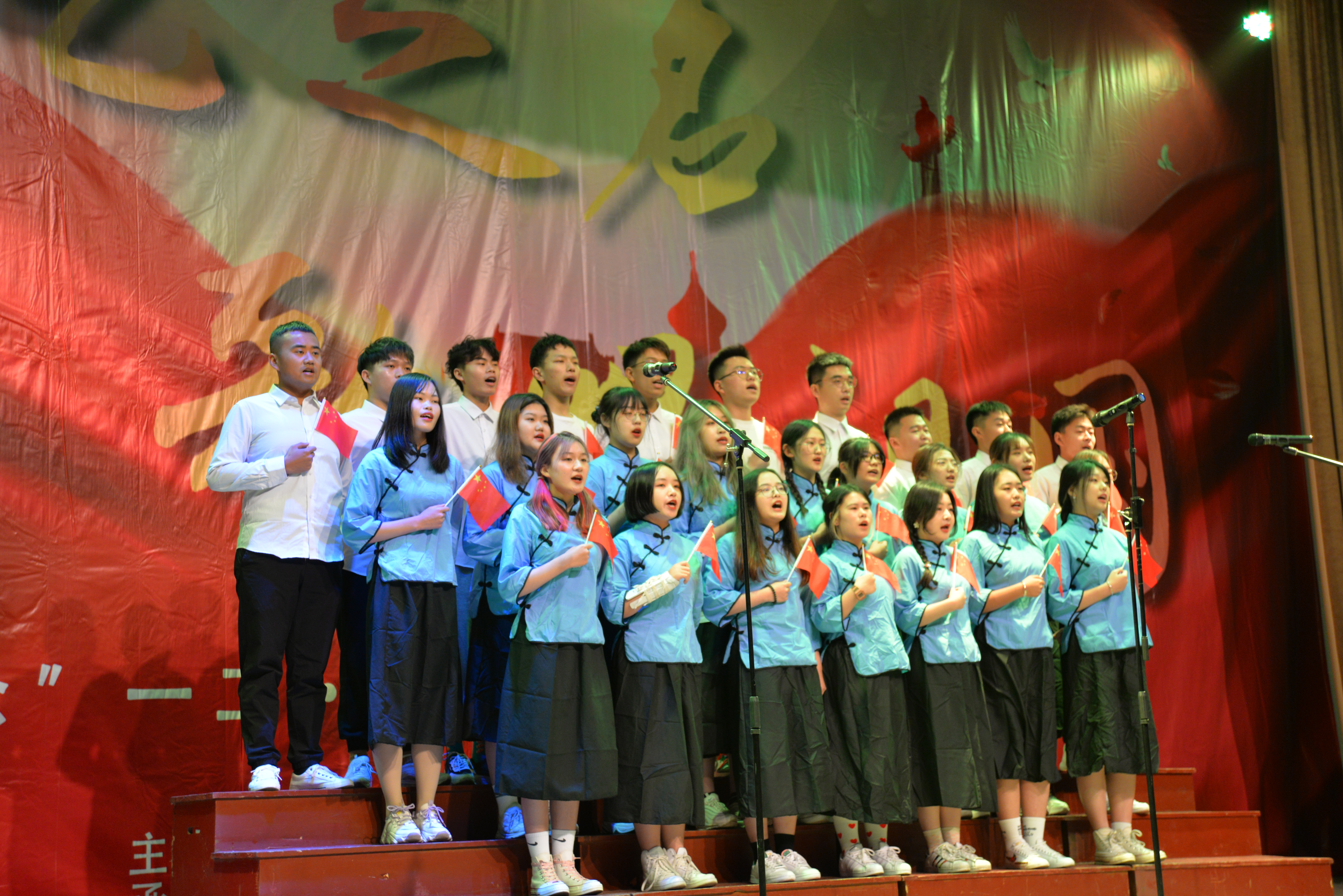 下午2点,比赛正式开始。2020级各班按照比赛顺序依次上台进行演唱。他们服装统一、队形整齐,歌声嘹亮,尽显青春风采。李鹤、杜文婧演唱的开场曲《我爱你中国》拉开了比赛的序幕。艺设202班合唱《奔跑》,将团结向上、积极进取的班风与一往直前、无惧风雨的盎然青春通过歌声展现了出来。实现中华民族伟大复兴的“中国梦”是每一代国人的夙愿,艺设204班带来的《我们都是追梦人》鼓励大家勇于追梦,为实现“中国梦”努力奋斗。艺设207班合唱的《中国军魂》与艺设205班合唱的《中国人民解放军军歌》,赞颂了中国人民解放军热爱祖国、纪律严明、无畏艰险、团结战斗的精神品质。绘画201、202班同学们以空灵和谐的混声重唱演绎了《夜空中最亮的星》,以歌献礼,将整场比赛推向高潮。艺设201、206班以男女齐唱的方式演唱了《我和我的祖国》、《歌唱祖国》,表达出当代青年对祖国的无限热爱,以铿锵有力的歌声歌颂着中华民族自强不息的伟大精神。音乐201班的一曲《我爱你中国》为此次比赛画上了圆满的句号。最终音乐201班荣获冠军,绘画201、202班获得亚军,艺设204班获得季军。