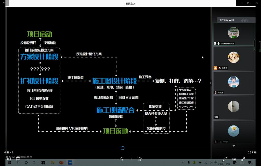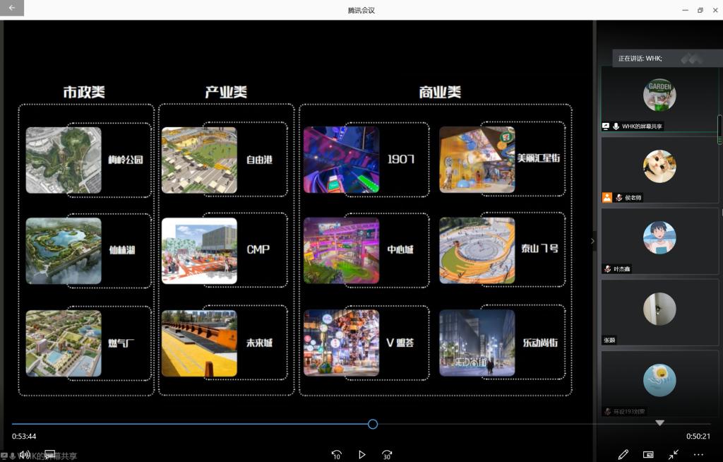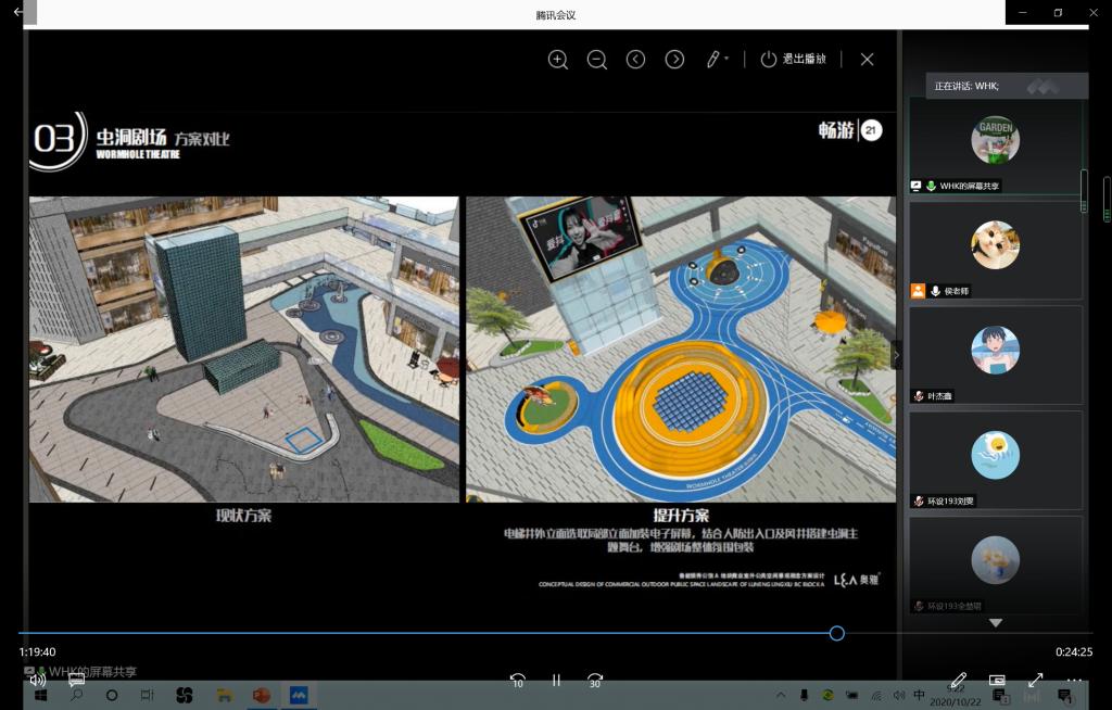 课程的第二个环节,由奥雅设计青岛分公司高级设计师魏洪凯为同学们做精彩的专业分享。魏洪凯曾经是公司2009级的理工学子,时隔十年,他与伟德BV官网的学弟学妹们共聚《设计原理》的在线课堂,通过对园林规划设计流程的讲解以及两个优秀设计的案例的分享,为我们带来了环境设计专业最前沿的设计理念和设计动态。本次分享的两个案例一个是青岛台柳路1907商街景观设计,一个是鲁能领秀商业室外公共空间景观设计,这两个项目都是现在热度比较高的城市商业空间景观更新项目。通过魏洪凯的案例分享,让同学们对课堂理论知识有了进一步的认识,使书本上的知识更接地气了。