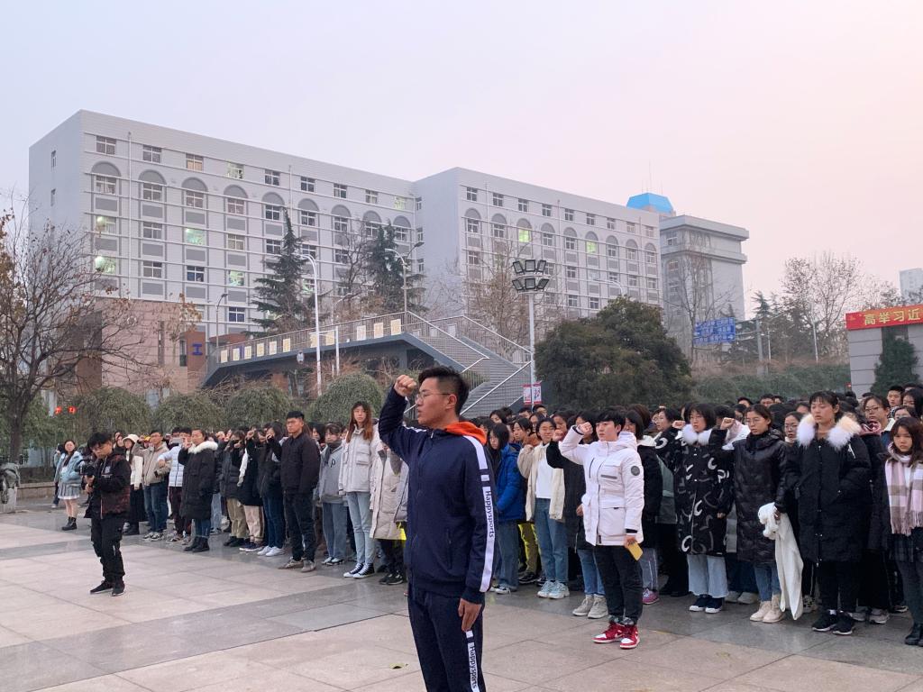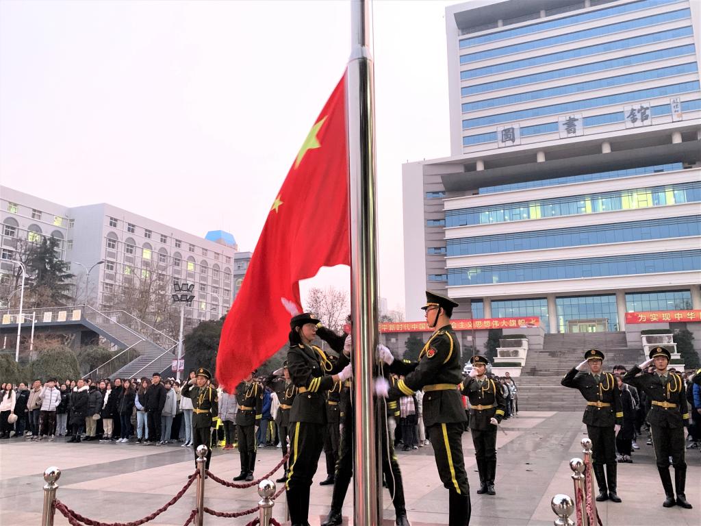 国旗护卫队迈着铿锵的步伐整齐的进入场地,与清晨的第一缕阳光共同映入师生的视线,升旗仪式也随之正式开始。伴随国旗手的振臂,鲜艳的五星红旗在清晨微凉的寒风中缓缓展开,在音乐的伴奏声中升空,全体师生庄严肃立,向国旗行注目礼。视觉191罗惟一作为员工代表以“勿忘一二九,共图中华强”为主题发表演讲。她表示当代老员工要永远铭记那段青年员工因爱国而走上街头斗争的历史,更需要继承和发扬“一二•九”爱国运动的精神,我们在前辈们未走完的路上继续前进,以天下为己任,为祖国的繁荣昌盛贡献自己的智慧与力量。”