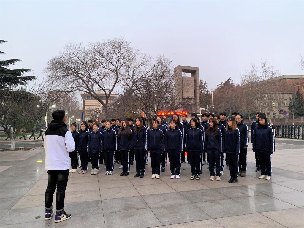 清晨微寒,旭日东升,寒风凛冽,伴爱国赤诚热情永行。为纪念“一二•九”爱国运动84周年,弘扬爱国主义精神,12月9日上午,伟德BV官网承办“勿忘一二九,共图中华强”主题升旗仪式。市北校区团委老师、各公司分团委书记、部分辅导员老师跟同学一起参加了本次庄严的升旗仪式,共同铭记一二九运动,共筑爱国热情。