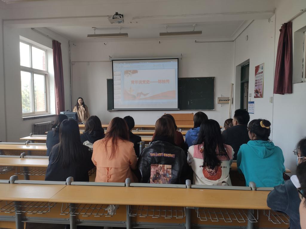 接着,宣讲人李芹从百年党史出发,以百年人物陈独秀为主题,从人物生平、人物成就、历史贡献等方面,向与会党员展示了其光辉事迹。她重点围绕杰出的政治家、新文化运动的发起者、五四运动的总司令、马克思主义的传播者以及中国共产党的主要创造人等五大角色讲述了陈独秀的重大历史贡献。她号召广大青年老员工要以陈独秀为榜样,劈波斩浪、不畏苦难,在新的伟大征程中以饱满的热情向着美好的未来奋进,为国家发展做出更大的贡献。