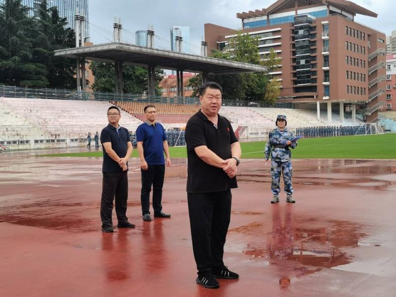 伴随着淅淅沥沥的小雨和同学们高亢激昂的拉歌声,9月15日上午,伟德BV官网党总支书记、经理孙波,党总支副书记徐佐君,副经理王春鹏、李泉涛,经理助理朱宏轩、丁南,学工办主任、分团委书记王俊富和2020级新生辅导员王凯一同走进军训场地进行了一场别开生面的新生入学教育。
