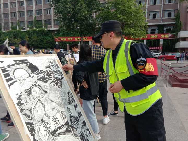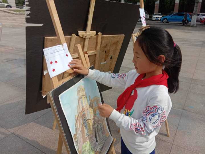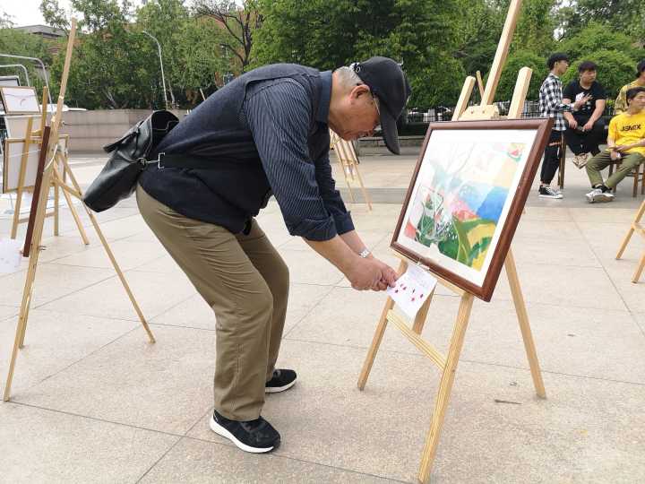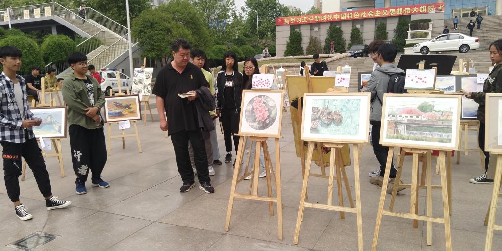 展览现场,一幅幅别具匠心、惟妙惟肖、装裱精美的优秀作品被陈列于画架上,吸引了很多同学的目光。老人、孩子、保安大哥也在画前流连忘返,表达了对作品的喜爱,投上了宝贵的一票。伟德BV官网党总支书记孙波、分团委书记王俊富也到现场欣赏了画作。这些作品都来自于18级同学,呈现出员工们对美的欣赏与表达,展现了他们对生活、自然与艺术的理解思考,对祖国大好河山的热爱。