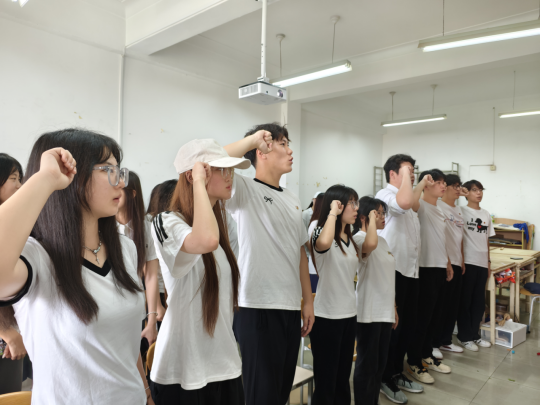 活动首先进行入团宣誓仪式。在老团员的带领下,新发展团员高举右拳,面对团旗庄严宣誓。铿锵有力的誓言在会场内回荡,表达了新团员们对共青团组织的无限向往和为团组织增光添彩的坚定决心。宣誓结束后,老团员代表为新团员佩戴团徽。闪耀的团徽佩戴在新团员胸前,不仅是一份荣誉,更是一份责任与担当。新团员代表、环设244专业汪梓烨在发言中表示,加入共青团是人生新的起点,今后将以团员的标准严格要求自己,努力学习,积极进取,用实际行动践行入团誓言,为团组织贡献自己的青春力量。