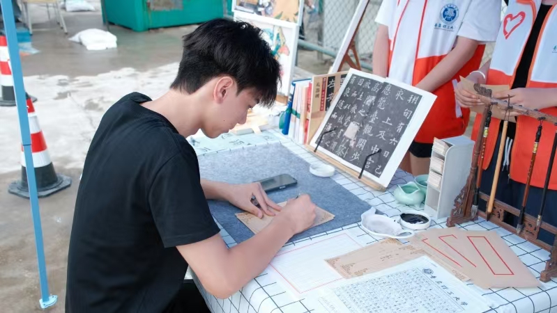签名墙前,新生们纷纷拿起笔,记录这专属的一刻。板上密密麻麻的姓名不仅是对自己大学挑战的庄重承诺,也是与公司情感的深厚联结,更是向未来启航的坚定誓言,一笔一划,都承载着对未来的期许与梦想。颇具专业特色的“一封家书”活动吸引了众多新生家庭参与。案台陈列笔墨与宣纸以及家书范本创作指引。参与家庭或亲子携手共书,在默契配合中写下真挚寄语;或各自挥毫进行书法创作,将对未来的期盼、对家人的牵挂凝于笔端。墨香浸润校园,一笔一划间,满是牵挂与嘱托,既有家长对孩子独立成长的嘱托,也有学子对家庭关怀的感恩,更蕴含着家校同心共育的美好愿景。