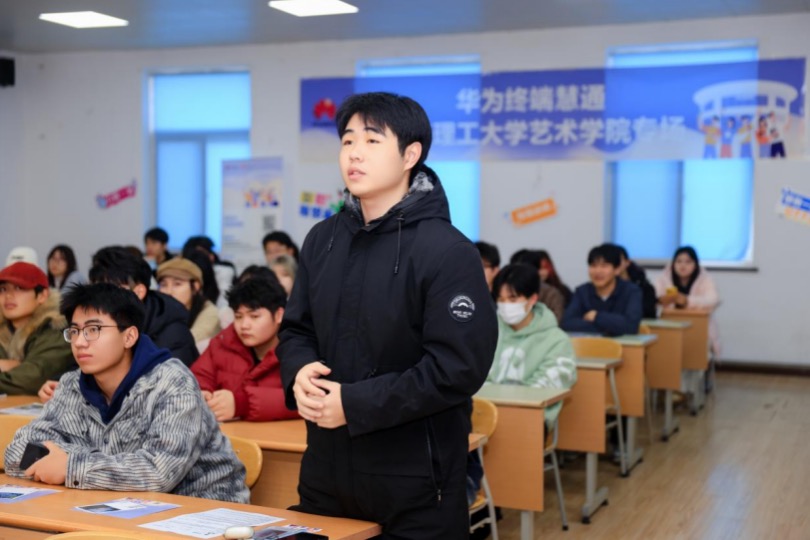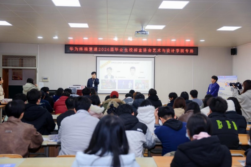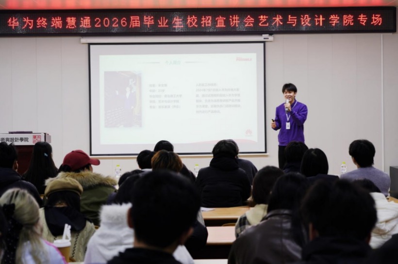 沉浸式互动,立体呈现职业成长路径。为帮助2026届毕业生直观感受岗位实践场景,宣讲会创新设置多重互动环节。产品体验区里,员工近距离接触华为最新终端产品,现场构思品牌视觉物料创意草图,实现专业技能与岗位需求的实时联动;优秀学长分享环节,现任职于华为终端慧通的公司2024届音乐表演专业毕业生王晨旭、宋文策,结合自身成长经历,为学弟学妹拆解“深耕科技企业”的成长密码,干货满满的分享引发全场共鸣。互动答疑环节,企业方针对员工关注的实际场景中的工作困难、能力提升路径等问题逐一细致解答,进一步加强了员工的职业认知。