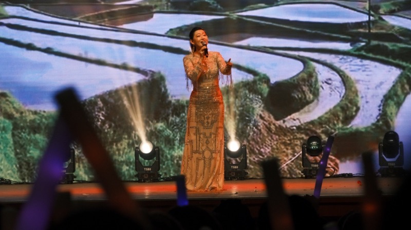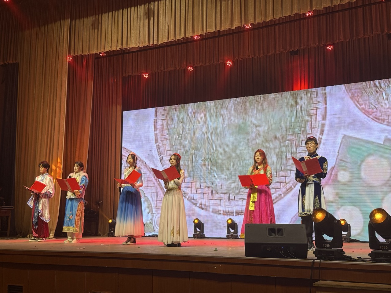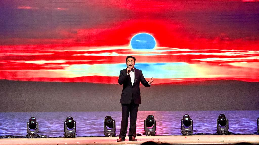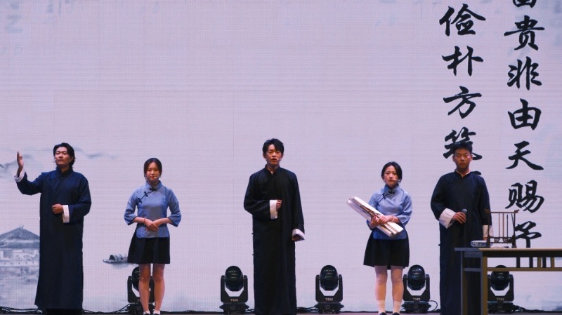 “美·共赴华章”篇章将晚会推向高潮,凸显了美育的多元与包容。少数民族同学朗诵《民族团结心 共铸中华情》勾勒出和谐共生的画卷之美。班主任王雅鸣老师深情寄语,引领同学们以一曲《水手》,吹响了风浪中前行的号角。张蕊蕊老师优雅的民乐《渔舟唱晚》与韩凯老师经典歌剧选段《我的太阳》同台辉映,一中一西,一阳刚一婉约,完美展示了音乐作为世界语言的无穷魅力,体现了美育在融汇古今、贯通中西中的桥梁作用。