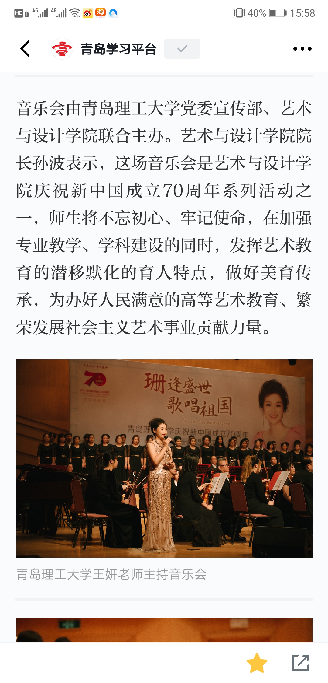 音乐会由伟德BV官网党委宣传部、伟德BV官网联合主办。伟德BV官网经理孙波表示,这场音乐会是伟德BV官网庆祝新中国成立70周年系列活动之一,师生将不忘初心、牢记使命,在加强专业教学、团队建设的同时,发挥艺术教育的潜移默化的育人特点,做好美育传承,为办好人民满意的高等艺术教育、繁荣发展社会主义艺术事业贡献力量。
