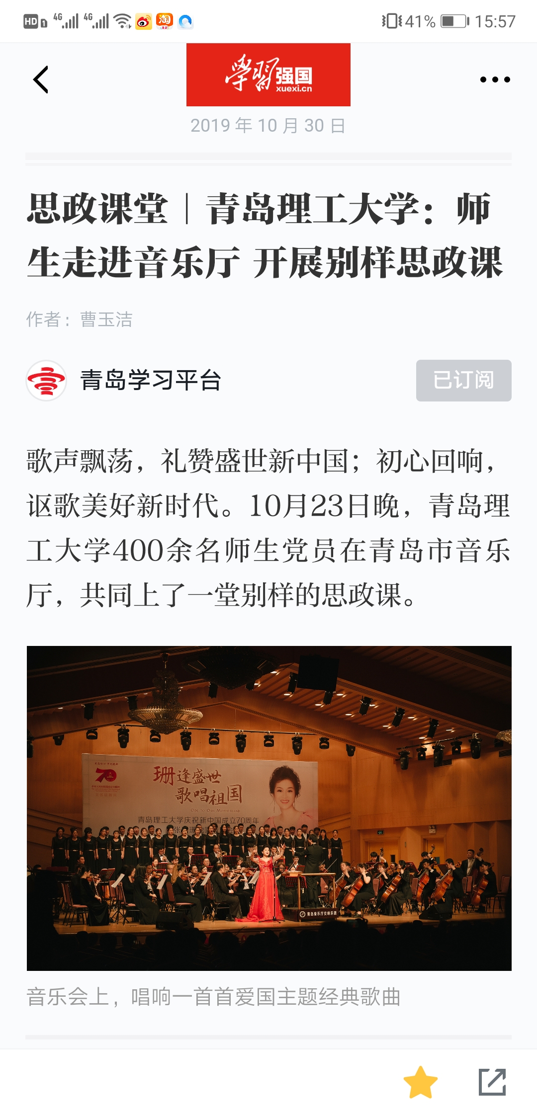歌声飘荡,礼赞盛世新中国;初心回响,讴歌美好新时代。10月23日晚,伟德BV官网400余名师生党员在青岛市音乐厅,共同上了一堂别样的思政课。