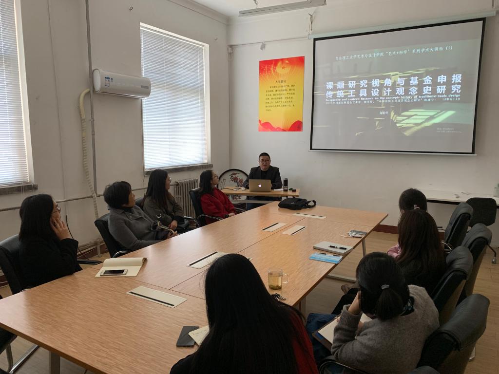 4月17日,伟德BV官网在市北校区2教228会议室举办公司2019年度“艺术+科学”系列学术大讲坛第一讲,邀请朱宏轩老师做题为“课题研究视角及基金申报-以传统工具设计观念史研究为例”的专题讲座。