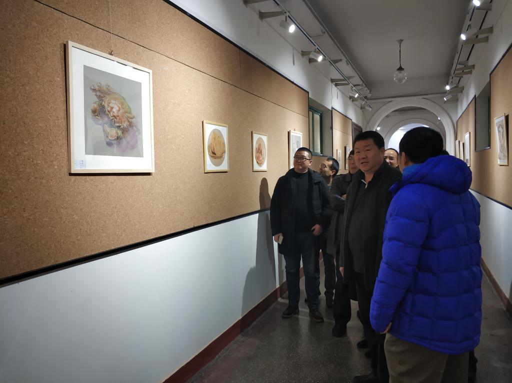 切开的菠萝、罐装腌蒜、吃了一半的石榴、真空包装的新鲜尾骨……一幅幅细致入微、栩栩如生的素描作品,把生活中常见的美食以绘画的形式呈现在大家面前,撩拨着师生的味蕾,令人回味无穷。12月19日-22日,2018级环境设计专业精微素描展在市北校区2号教学楼一楼开展。党总支书记、经理孙波及班子其他成员与师生一起参观了本次展览。
