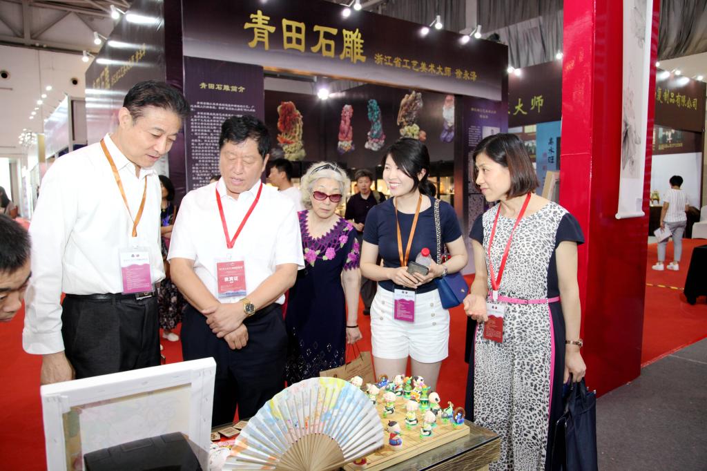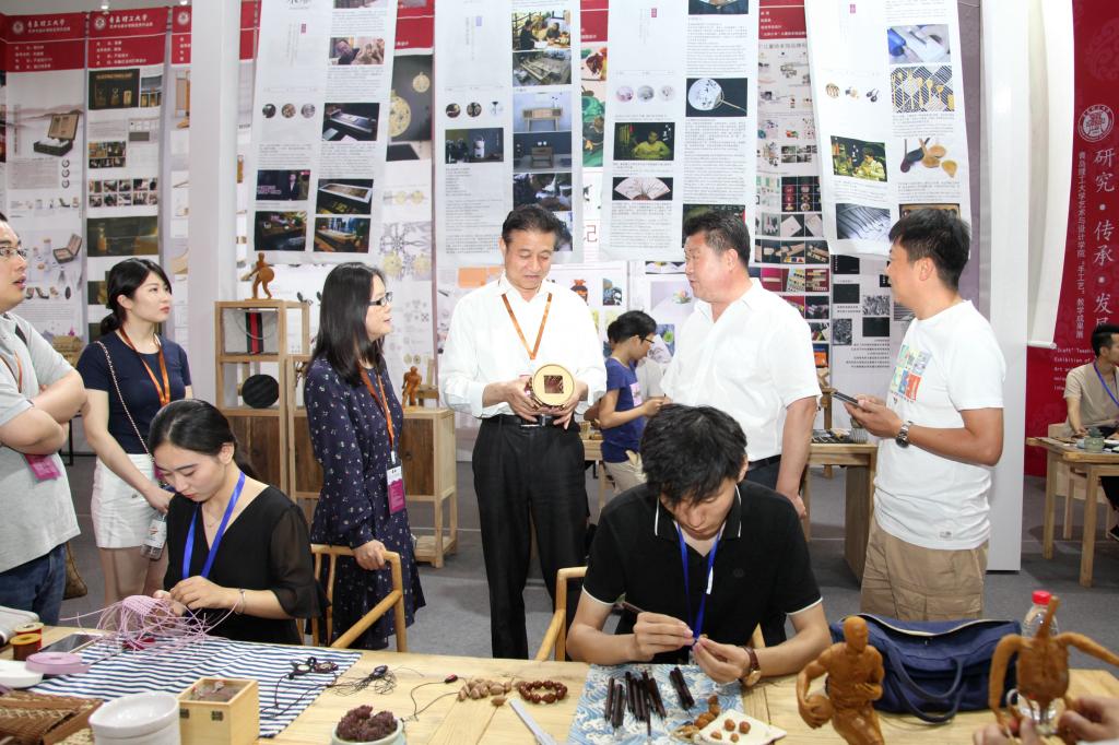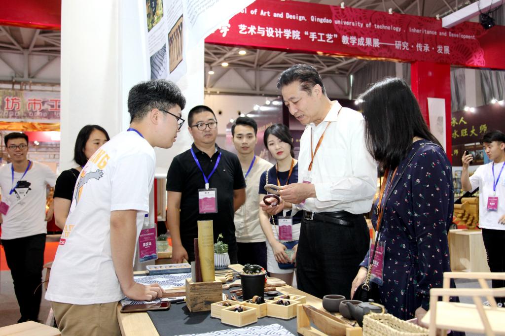 世界手工艺理事会主席罗茜·格林丽丝,亚太地区主席嘎达,副主席凯文·穆雷,青岛市委宣传部副部长、青岛市文广新局局长李明,青岛市工艺美术协会理事长满善良等中外工艺美术专家和领导参观了公司展区,观看了公司师生对手工木作、折扇、藤编、泥塑及核雕等的现场演示,对公司教学工作和师生作品表示赞许。