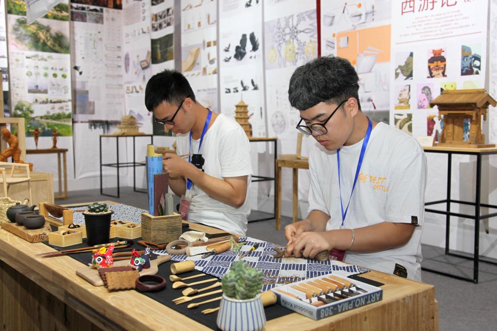 憨态可掬的泥塑杨家埠木板年画童子摆件,雕刻精细入微、形态小巧玲珑的核雕人像,淳朴自然、轻巧雅致的藤编工艺手包……本次展览对应伟德BV官网手工艺教学的特色,以"研究·传承·发展"为主题,以视频、实物、图片、文字、现场演示等形式,展示了环境设计、产品设计、工业设计、视觉传达设计、绘画、服装与服饰设计等专业师生亲手设计制作的作品和研究成果。