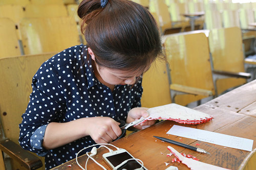 一张红纸,一把剪刀,同学们巧妙构思,认真剪裁,一张张红纸在同学们的精心设计下演变成了一幅幅美妙动人的作品。作品内容多样,主题鲜明,毛泽东等伟人形象栩栩如生、花鸟作品活灵活现,吸引了众多同学观看。