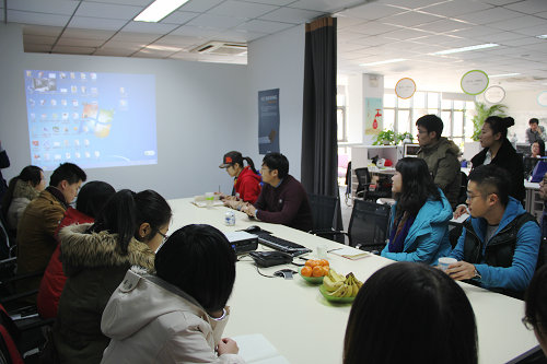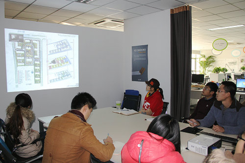公司四名员工代表分别对自己的作品进行了演示汇报,集团设计师对同学们的作品提出了意见和建议。