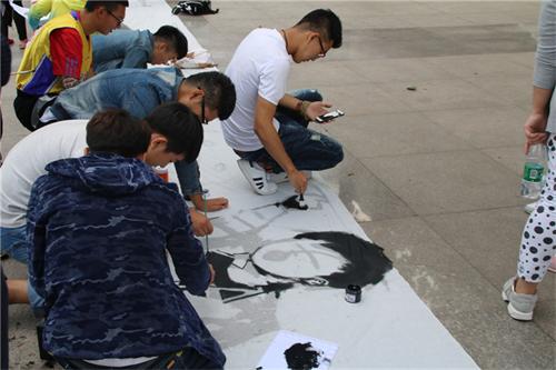 本次活动不设限制、自由发挥。同学们怀着自己对书画的热情与喜爱,利用手中的颜料、画笔等工具,在百米长卷上尽情发挥想象,画出自己满意的作品。